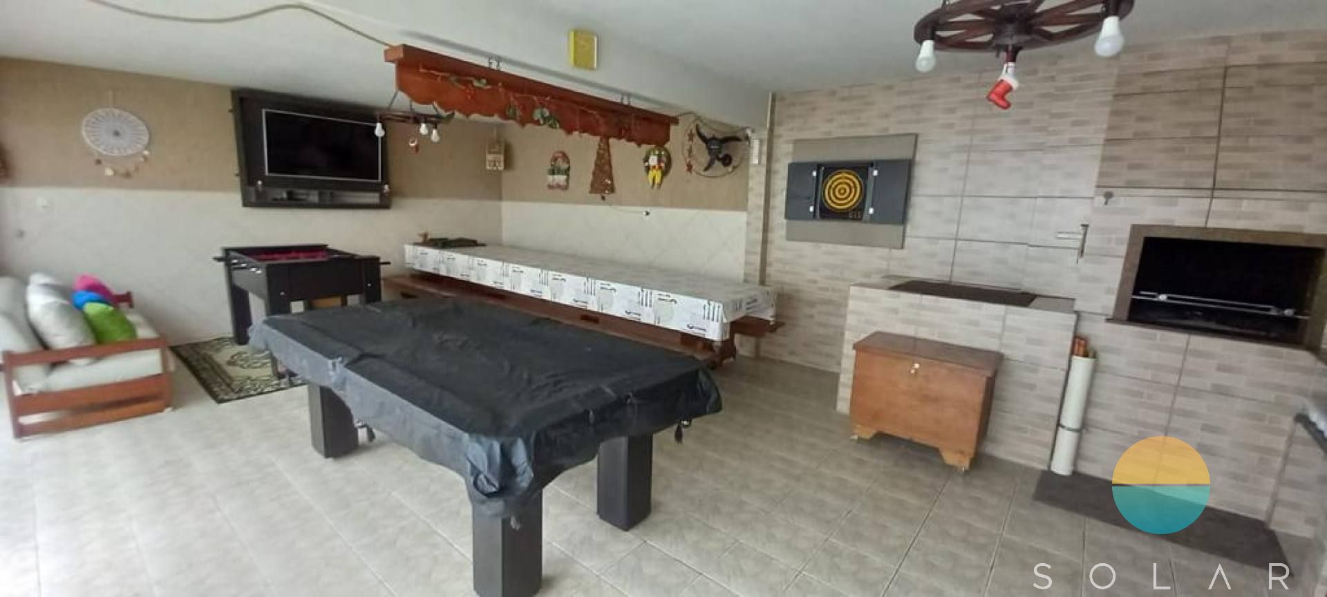 - Área de festa com cozinha completa, churrasqueira, fogão a lenha, mesa de jogos (sinuca e pebolim)